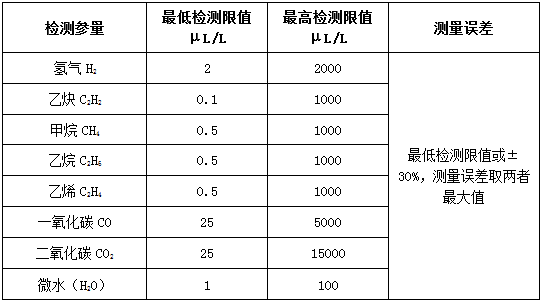 監測變壓器、電抗器等充油高壓電氣設備絕緣油中的氫氣(H2)、一氧化碳(CO)、甲烷(CH4)、乙炔(C2H2)、乙烯(C2H4)、乙烷(C2H6)、二氧化碳(CO2)、微水(H2O,可選)及總烴、總可燃氣體含量等,并實(shí)時(shí)分析、診斷變壓器/電抗器等的運行狀態(tài)。